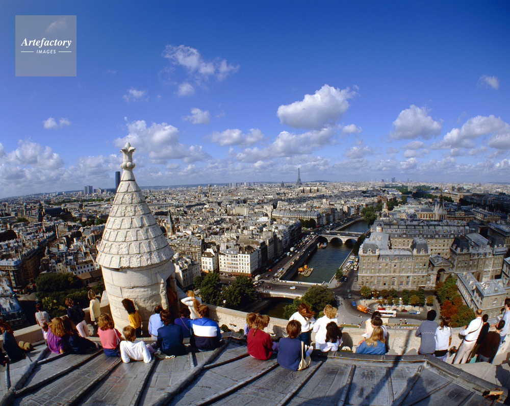 ノートルダム大聖堂,ノートルダム寺院,ノートルダム聖堂,セーヌ川,ゴシック建築,屋上,観光客,エッフェル塔