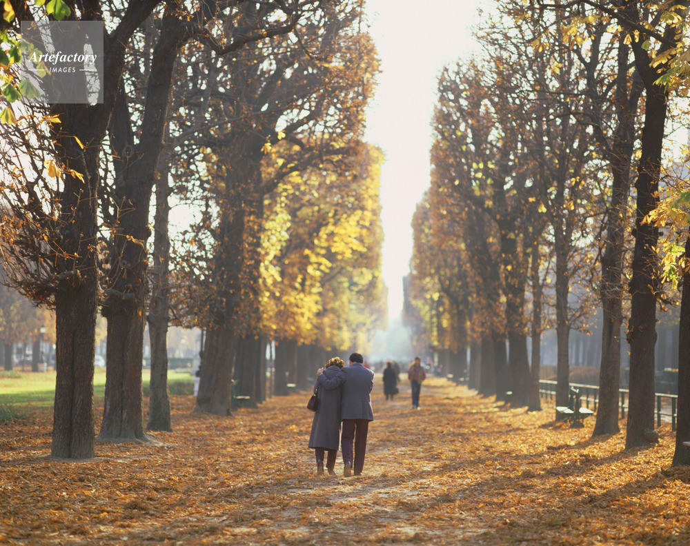 リュクサンブール庭園,並木,カップル,落葉,紅葉,秋,リュクサンブール宮
