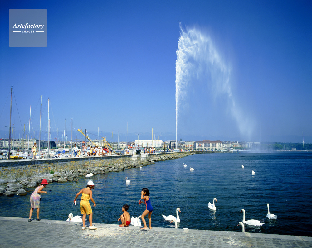大噴水,Jet dEau,149m,白鳥,子供,ヨットハーバー,ジュネーヴ州,Canton de Geneva,ジュネーヴ,ジュネーブ,Geneva,レマン湖,Lac Leman,湖,Lake