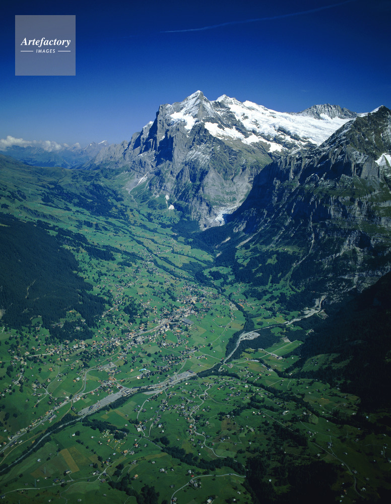 グリンデルワルトの村,ヴェッターホルン, Wetterhorn,標高,3704m,山,Mountain,ベルン州,Canton of Berne,ベルナー・オーバーラント,Berner Oberland,ユングフラウ地方,Jungfrau,グリンデルワルト,グリンデルヴァルト,Grindelwald,航空写真,Aero photo,Aerophotograph