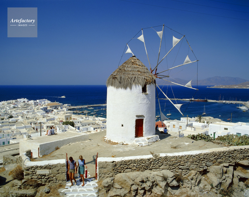 エーゲ海,Aegean Sea,キクラデス諸島,Cyclades,ミコノス島,Mykonos,島,Island,風車,Wind mill,Port,島,海,Sea,海洋,Ocean