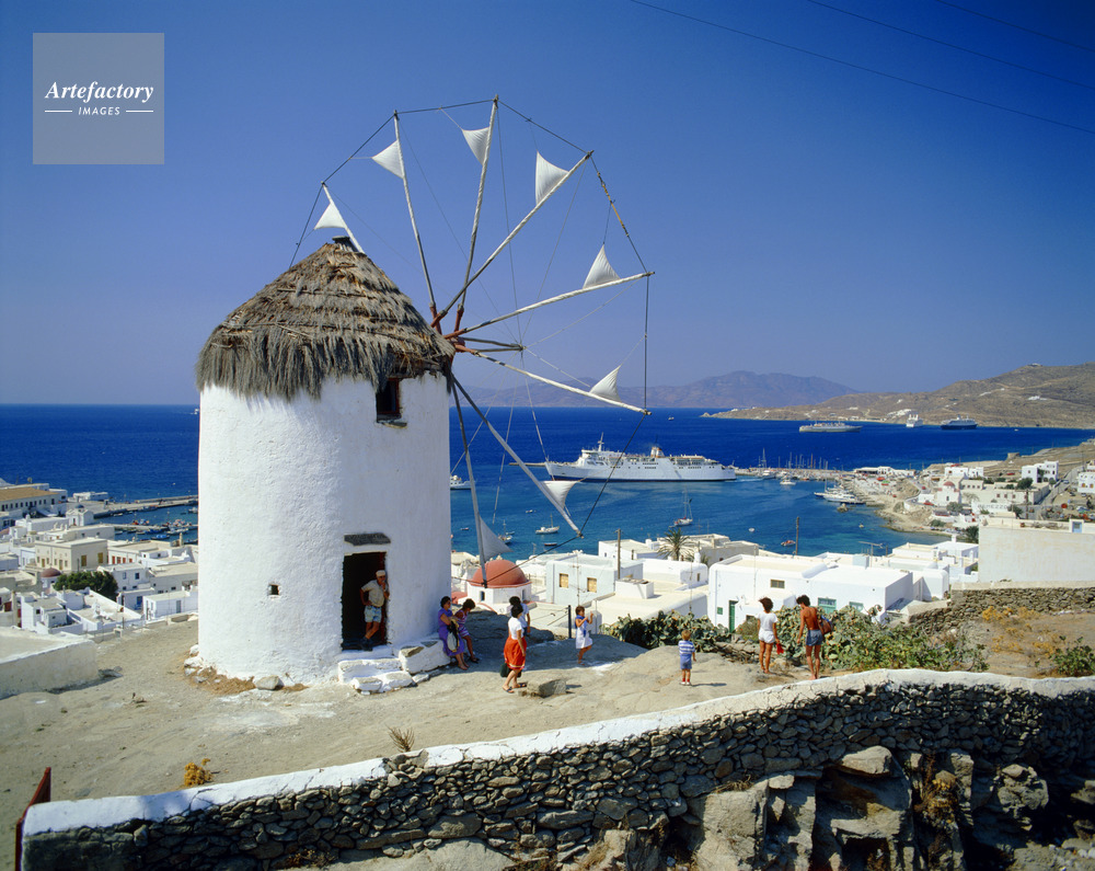 エーゲ海,Aegean Sea,キクラデス諸島,Cyclades,ミコノス島,Mykonos,島,Island,風車,Wind mill,Port,島,海,Sea,海洋,Ocean