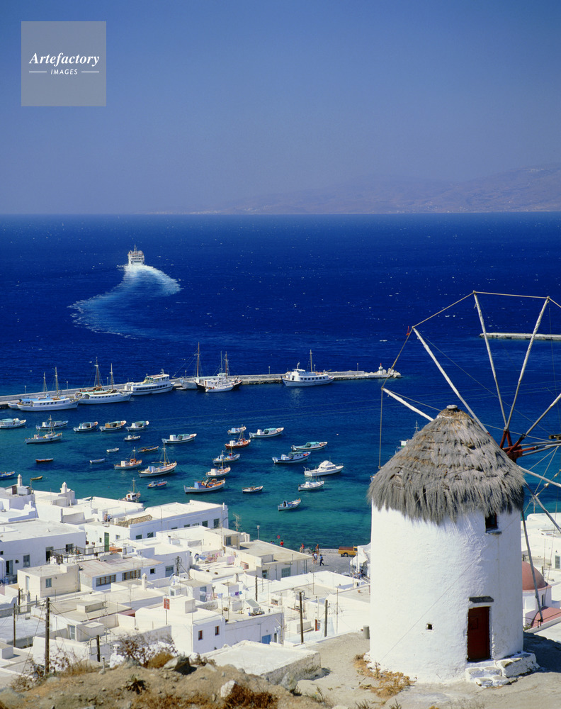 エーゲ海,Aegean Sea,キクラデス諸島,Cyclades,ミコノス島,Mykonos,島,Island,風車,Wind mill,Port,島,海,Sea,海洋,Ocean,客船,Passenger boat