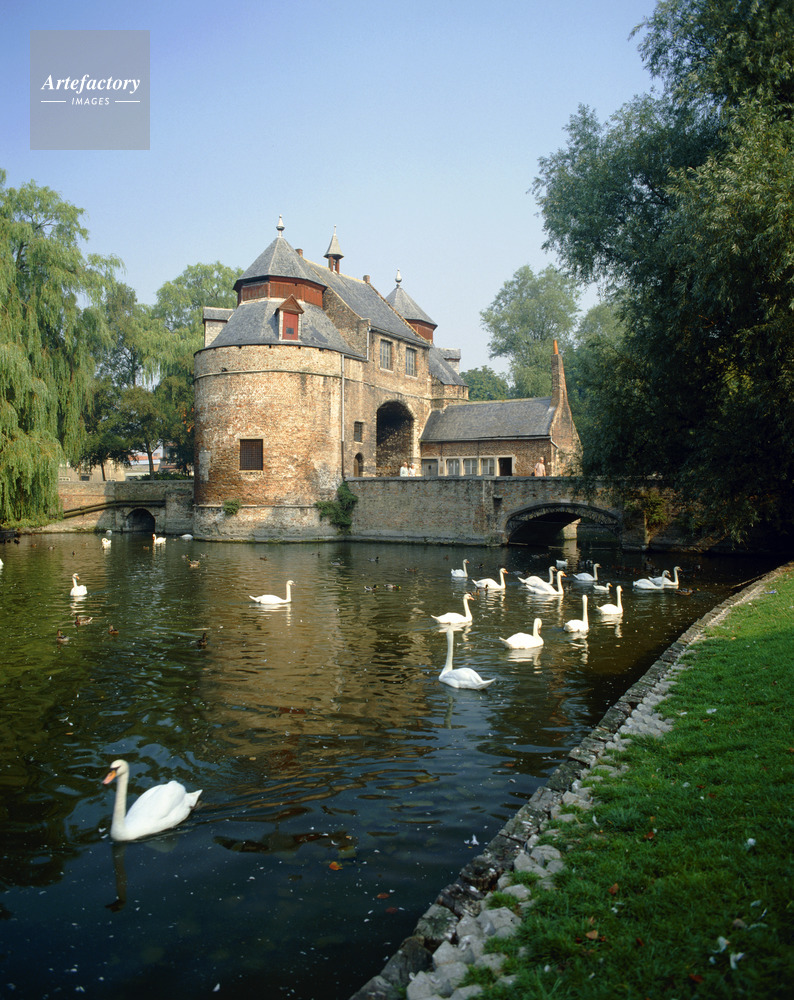 西フランデレン州,West Flanders,ブルッヘ,ブルージュ,Brugge,Bruges,水の都,城門,ロバの門,Ezelpoort,白鳥,Swan