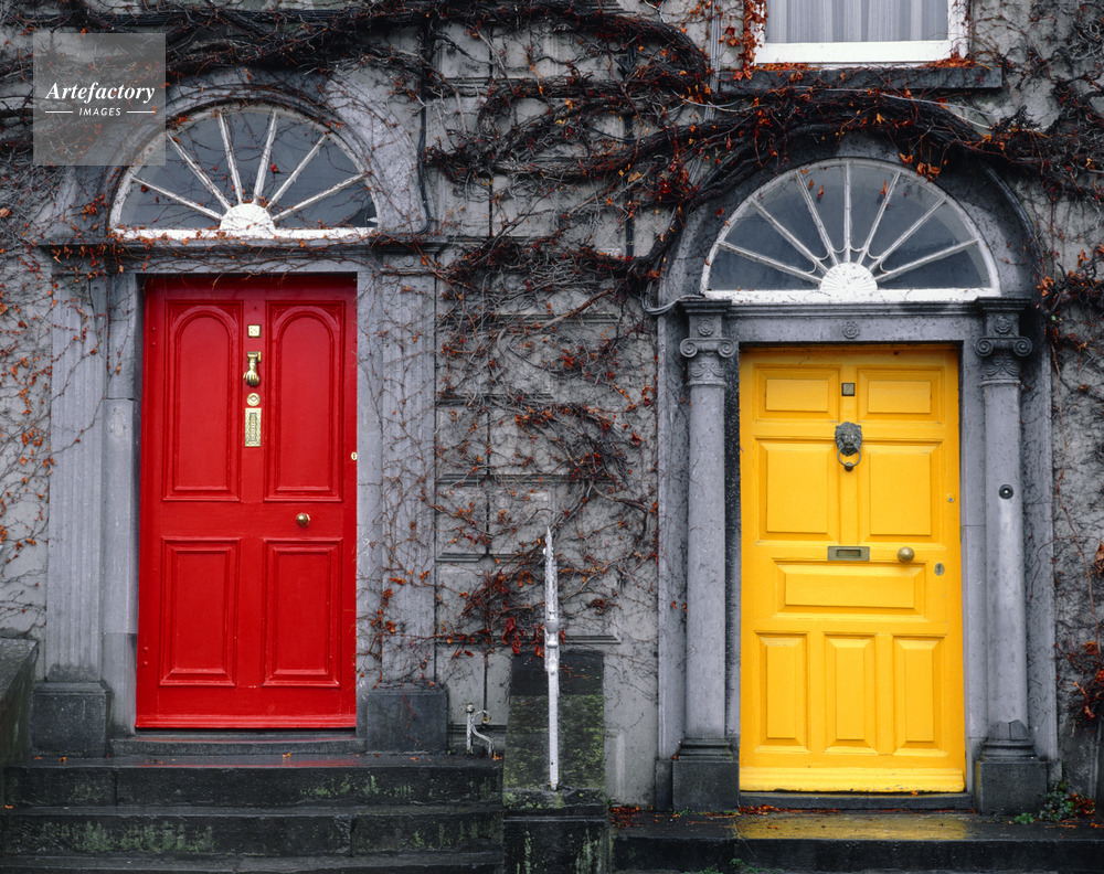 レインスター地方,ダブリン州,ダブリン,Dublin,Baile Atha Cliath,Dubh linn,街並,住宅,レンガ造り,扉,ドア,Door,カラフル,Colorfulness