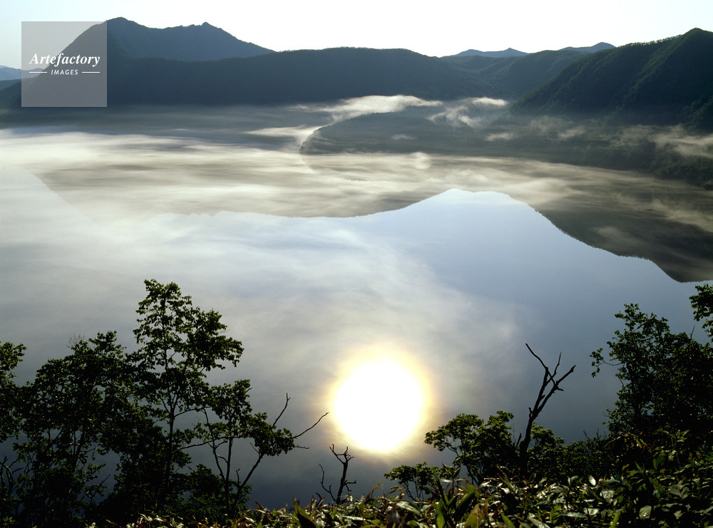 | 作品タイトル | 霧晴れる摩周湖と摩周岳と湖面に映る太陽 | モデルリリース | なし | |