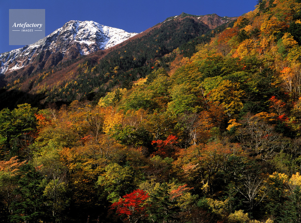 | 作品タイトル | 紅葉の広河原から北岳初冠雪 | モデルリリース | なし | |