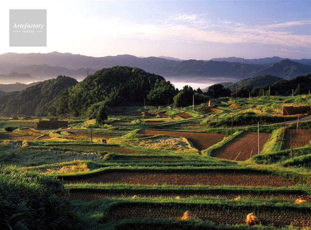 | 作品タイトル | 山王寺・稲刈りの頃、朝景色 棚田百選 | モデルリリース | なし | |