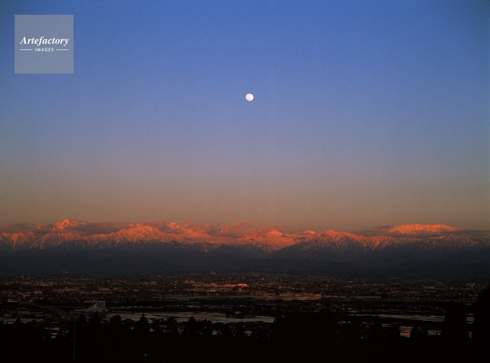 | 作品タイトル | 夕日に染まる立山連峰の天空に満月 | モデルリリース | なし | |