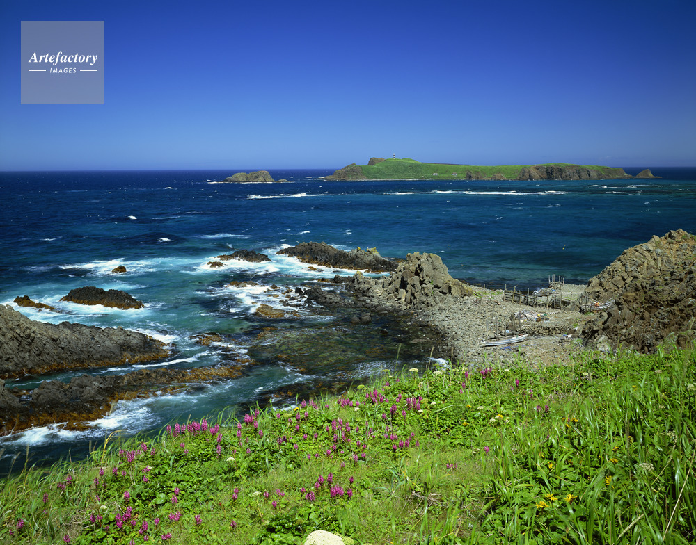 | 作品タイトル | ヨツバシオガマ咲くスコトン岬からトド島。礼文島 | モデルリリース | なし | |