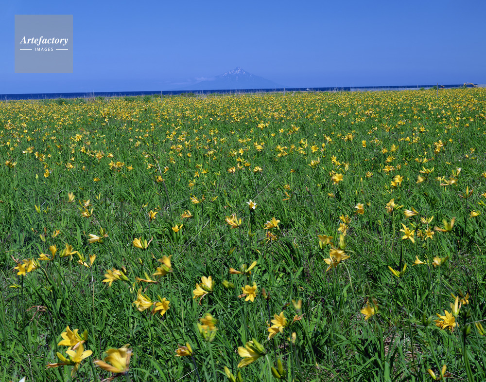 | 作品タイトル | エゾゼンティカと利尻山(利尻富士)。金浦原生花園にて | モデルリリース | なし | |