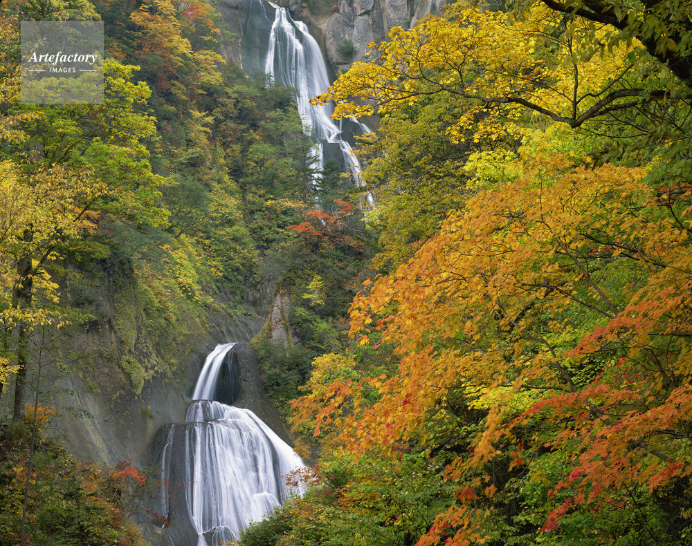 | 作品タイトル | 天人峡、羽衣の滝秋景 滝百選 | モデルリリース | なし | |