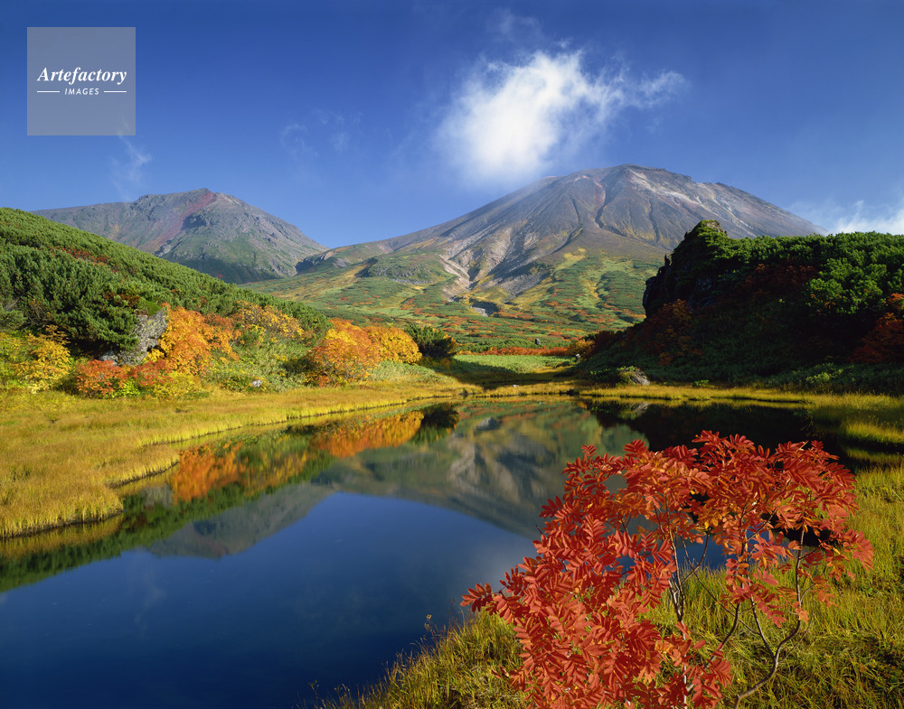 | 作品タイトル | 紅葉の沼より旭岳・熊ヶ岳 大雪裾合平 国指定天然記念物 | モデルリリース | なし | |