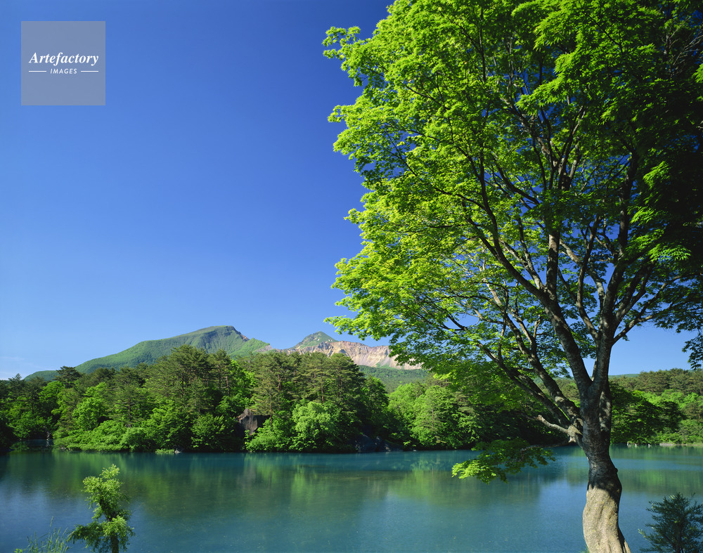 | 作品タイトル | 新緑の毘沙門沼から磐梯山(会津富士)。磐梯高原・五色沼 | モデルリリース | なし | |