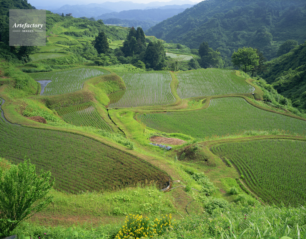 | 作品タイトル | 花坂の棚田。キショウブ咲く早苗の季節 棚田百選 | モデルリリース | なし | |