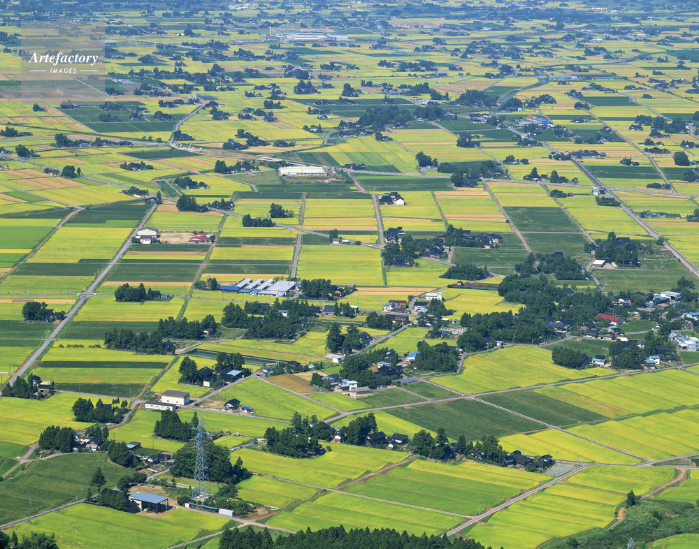 | 作品タイトル | 八乙女山から実りの稲田と散居住宅が広がる砺波平野 | モデルリリース | なし | |