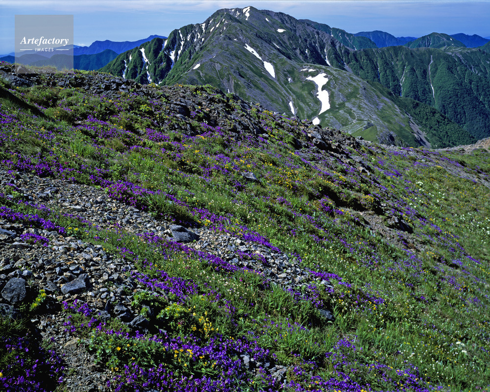 | 作品タイトル | オヤマノエンドウ咲く荒川岳から赤石岳。南アルプス | モデルリリース | なし | |