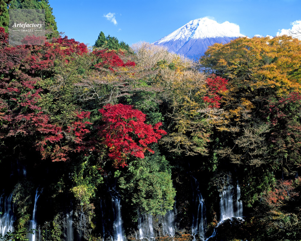 | 作品タイトル | 紅葉の白糸ノ滝と富士山。滝百選・名勝・国指定天然記念物 | モデルリリース | なし | |