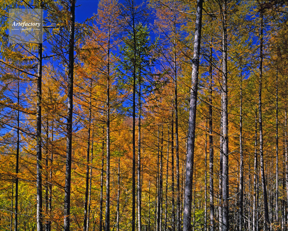| 作品タイトル | カラマツ黄葉と青空。黒沢口付近 | モデルリリース | なし | |