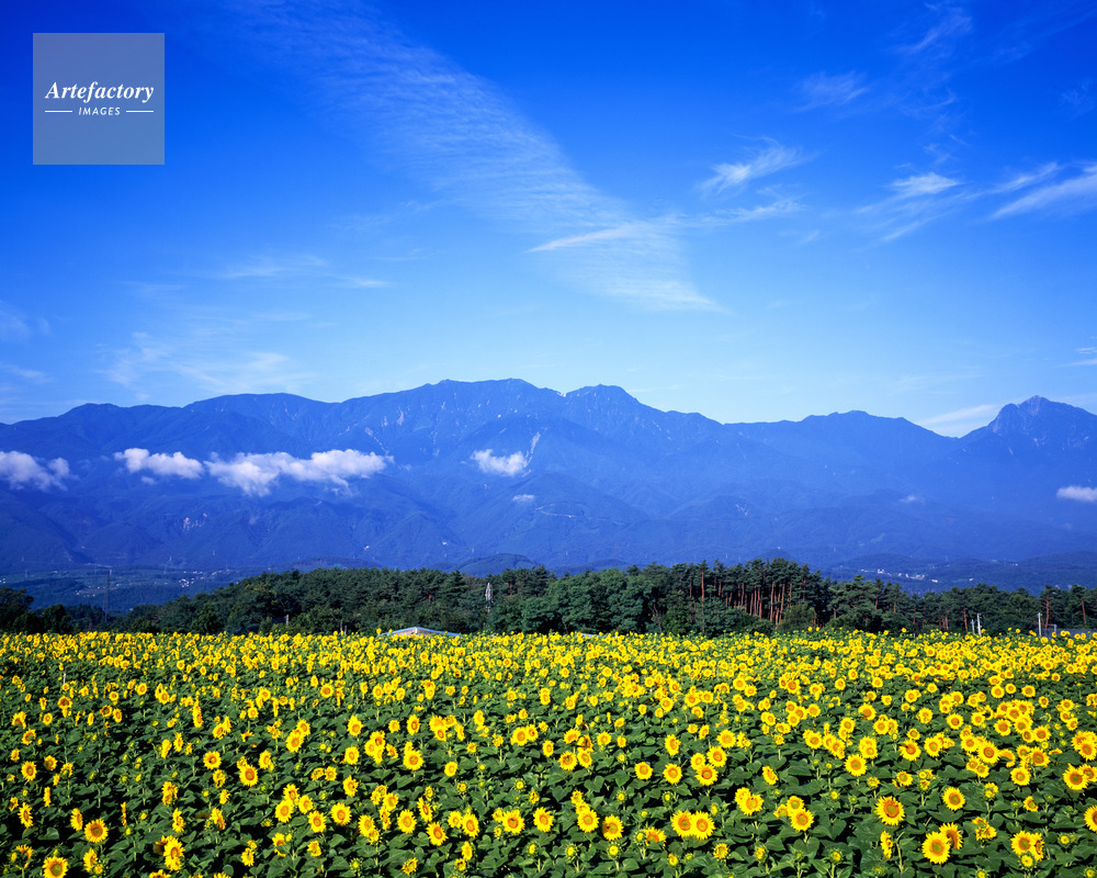 | 作品タイトル | 明野のヒマワリと南アルプス連峰 | モデルリリース | なし | |