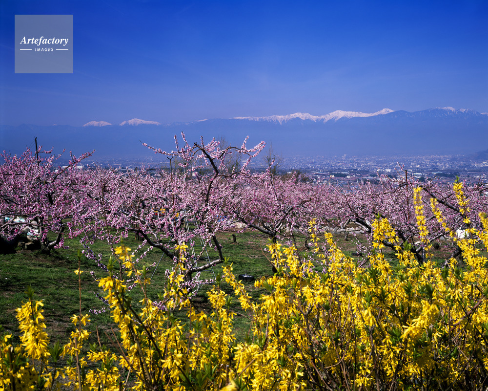 | 作品タイトル | レンギョウ咲く桃畑から南アルプス | モデルリリース | なし | |