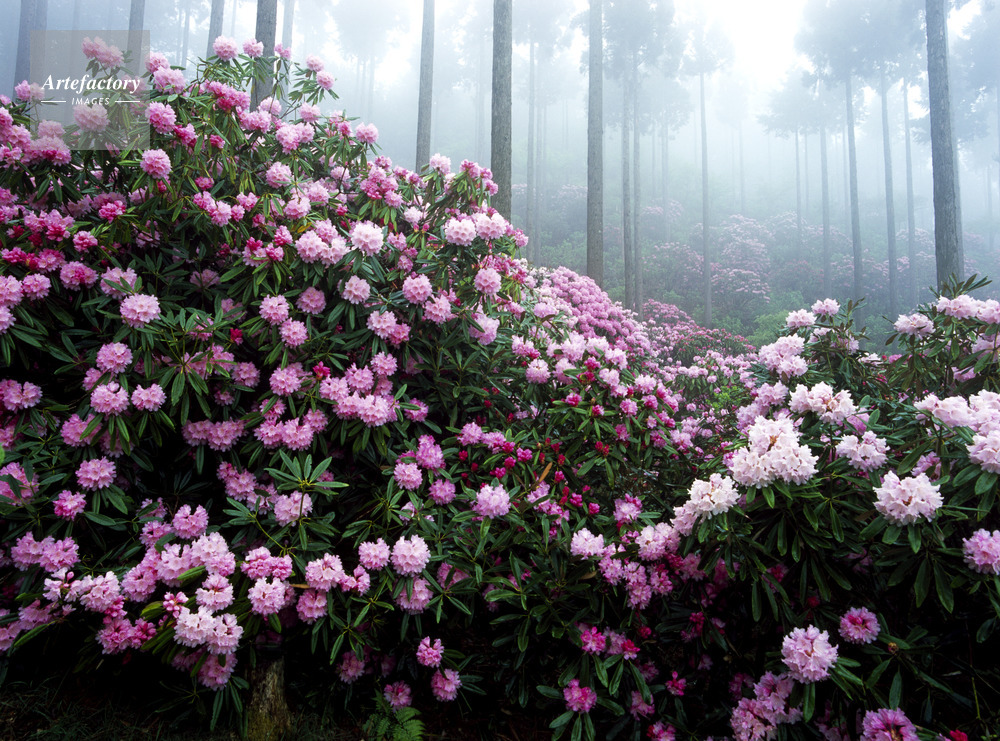 | 作品タイトル | ホンシャクナゲと霧の杉林。花園あじさい園 | モデルリリース | なし | |