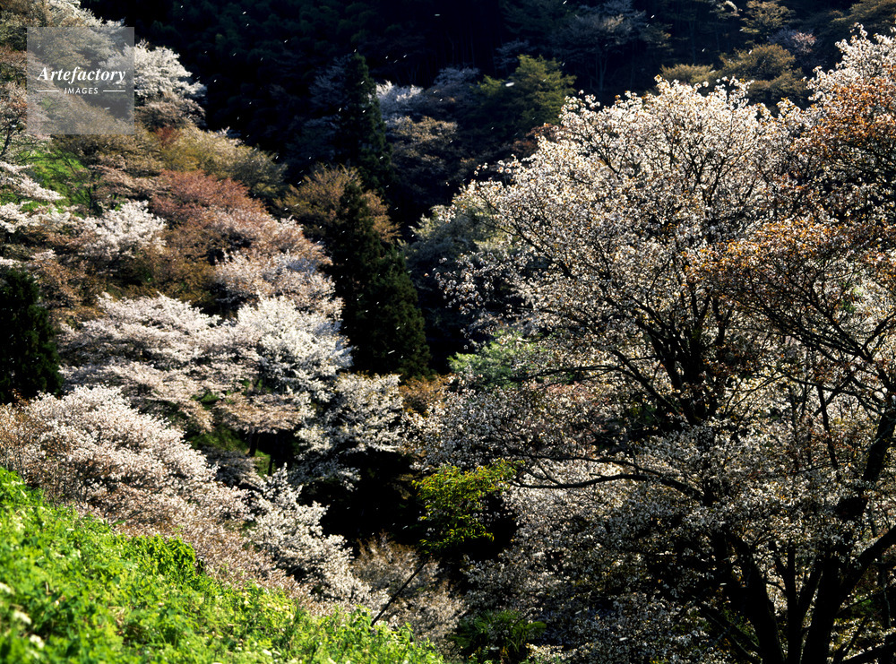 | 作品タイトル | 花の吉野山桜吹雪 上千本 シロヤマザクラ さくら名所百選・世界遺産 | モデルリリース | なし | |