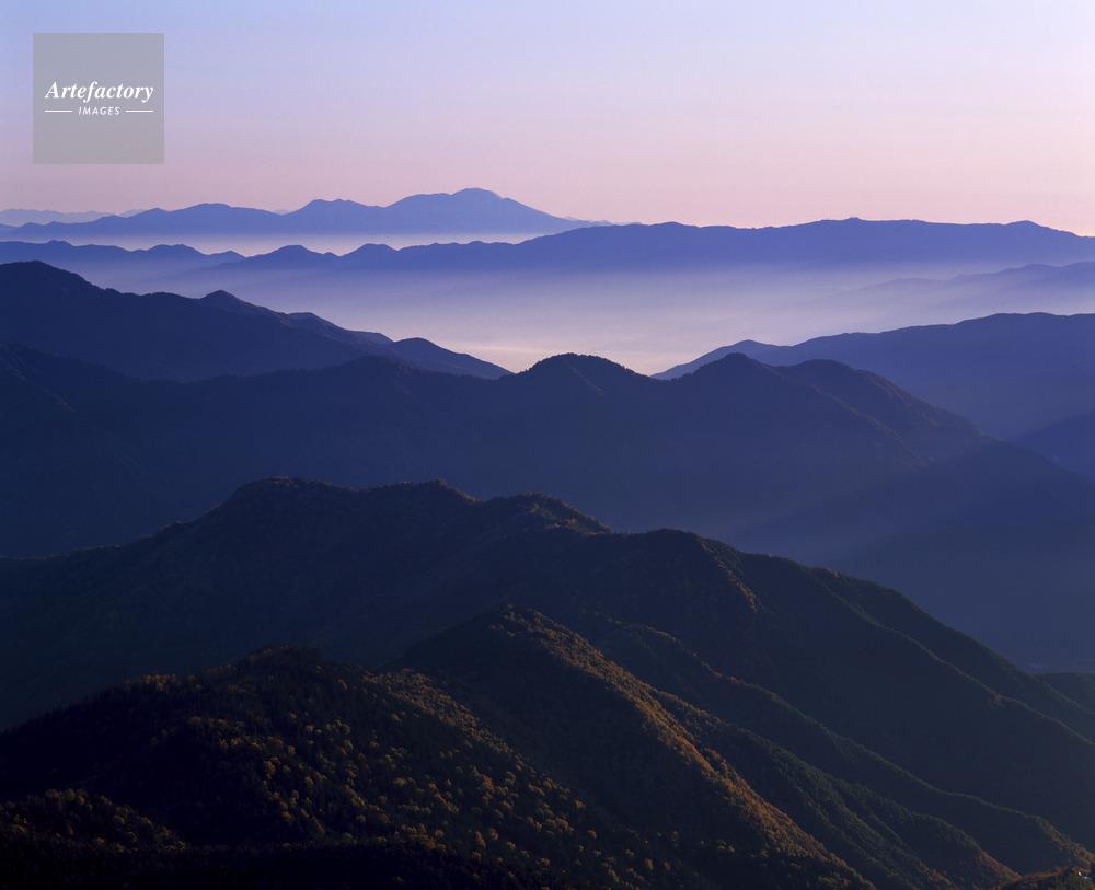 | 作品タイトル | 乗鞍岳から朝日に色づく山並みと八ヶ岳連峰遠望 | モデルリリース | なし | |