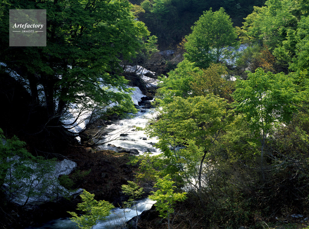 | 作品タイトル | ブナ新緑と雪解けの大越川 | モデルリリース | なし | |
