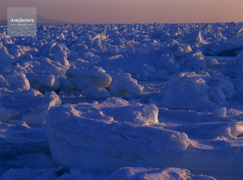| 作品タイトル | 野付水道を埋め尽くす朝日に染まる流氷と国後島 | モデルリリース | なし | |