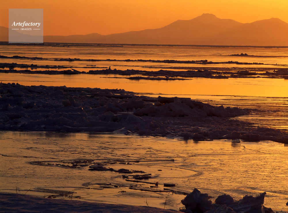 | 作品タイトル | 朝日に染まる流氷と国後島羅臼山 | モデルリリース | なし | |