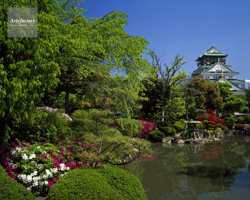 | 作品タイトル | 新緑とツツジ咲く日本庭園から大阪城天守閣 | モデルリリース | なし | |