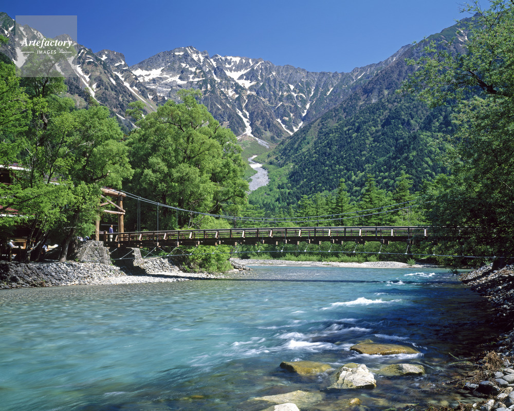 | 作品タイトル | 新緑の梓川より河童橋と穂高連峰 名勝・国指定天然記念物 | モデルリリース | なし | |