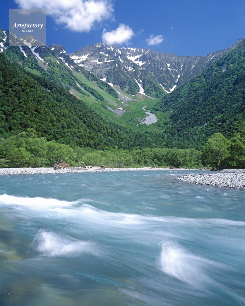 | 作品タイトル | 新緑の梓川と穂高連峰。上高地にて 名勝・国指定天然記念物 | モデルリリース | なし | |