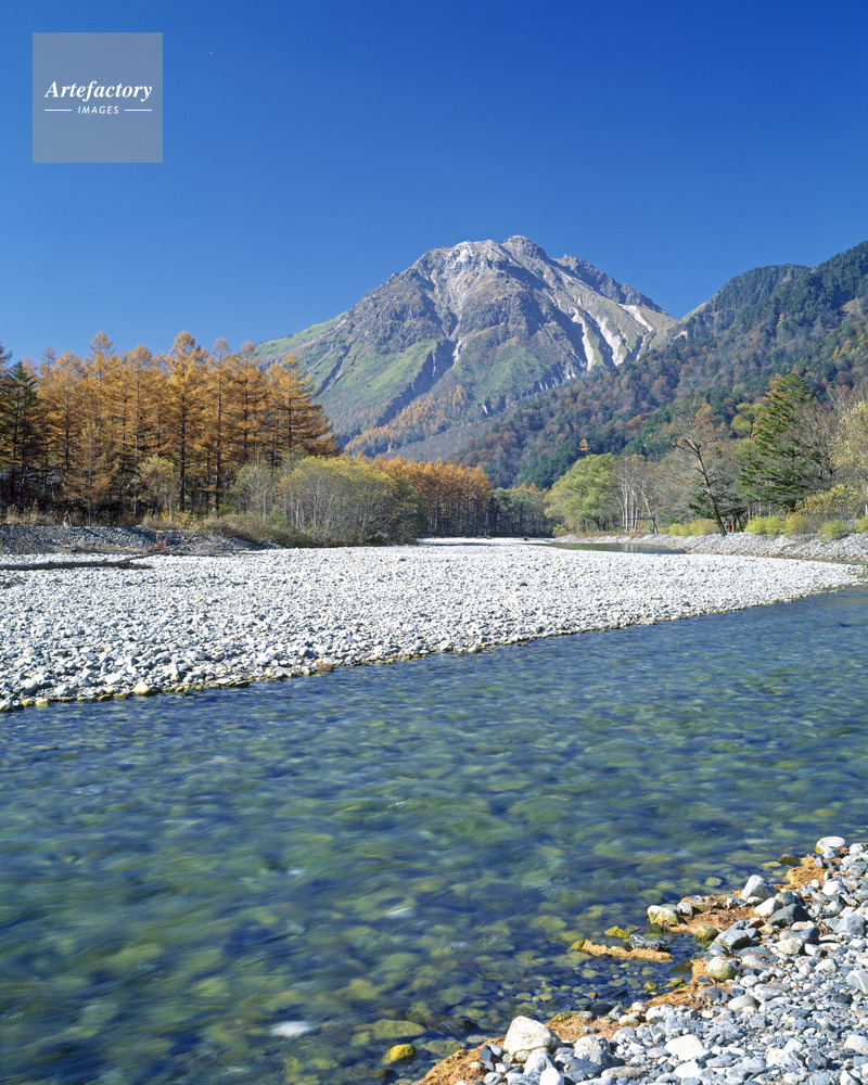 | 作品タイトル | カラマツ黄葉の梓川河畔と焼岳。上高地 名勝・国指定天然記念物 | モデルリリース | なし | |