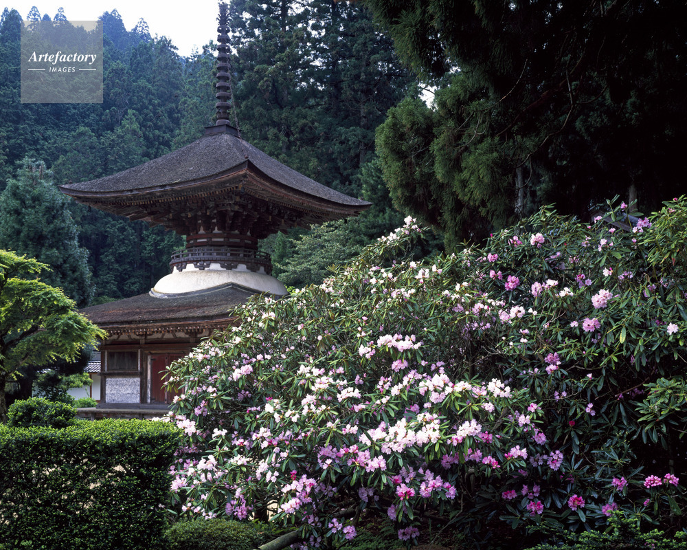 | 作品タイトル | ホンシャクナゲと金剛三昧院多宝塔。熊野古道小辺路 世界遺産 | モデルリリース | なし | |