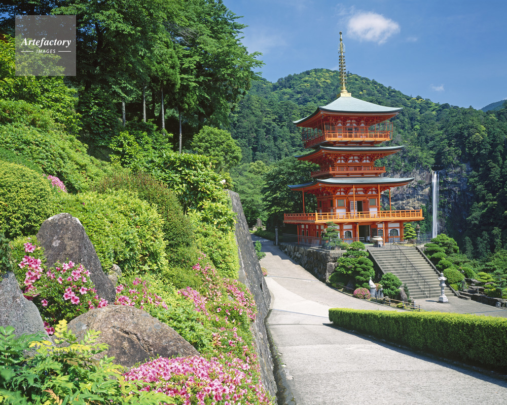 | 作品タイトル | サツキ咲く青岸渡寺三重塔と那智滝 世界遺産・滝百選 | モデルリリース | なし | |
