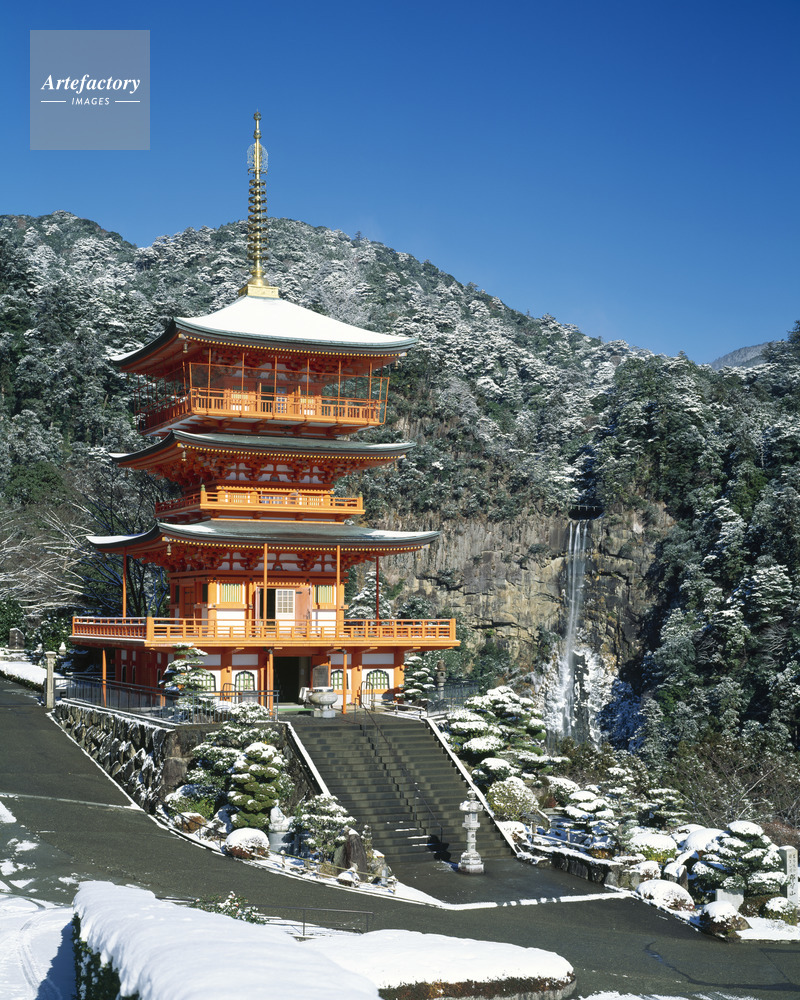 | 作品タイトル | 青岸渡寺三重塔と那智滝雪景 世界遺産・滝百選 | モデルリリース | なし | |