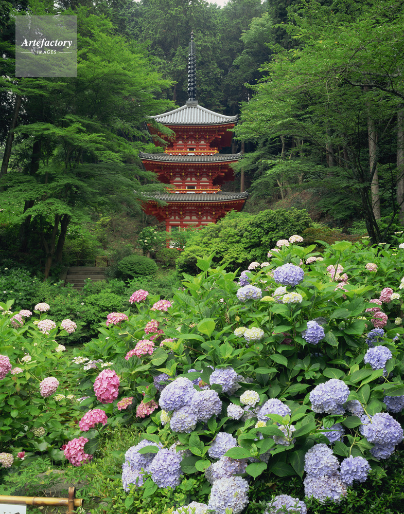 | 作品タイトル | アジサイ咲く岩船寺三重塔 | モデルリリース | なし | |