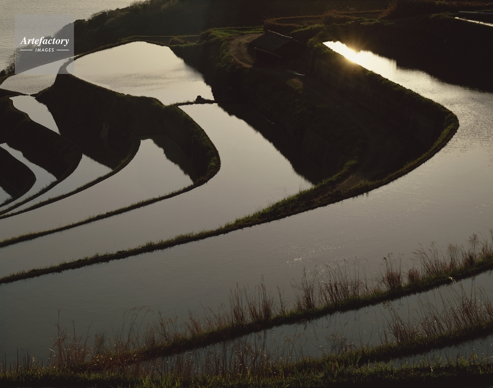 | 作品タイトル | 夕日に映える田植え前の土谷棚田 棚田百選 | モデルリリース | なし | |