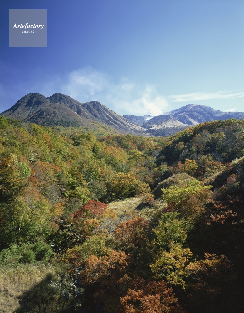 作品タイトル     紅葉の長者原からくじゅう連山 モデルリリース なし
