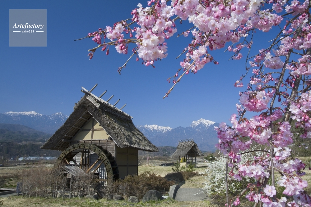 | 作品タイトル | 春の水車の里公園から南アルプス | モデルリリース | なし | |