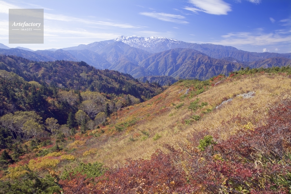| 作品タイトル | 紅葉の三方岩岳から白山初冠雪 オオコメツツジの紅葉 | モデルリリース | なし | |
