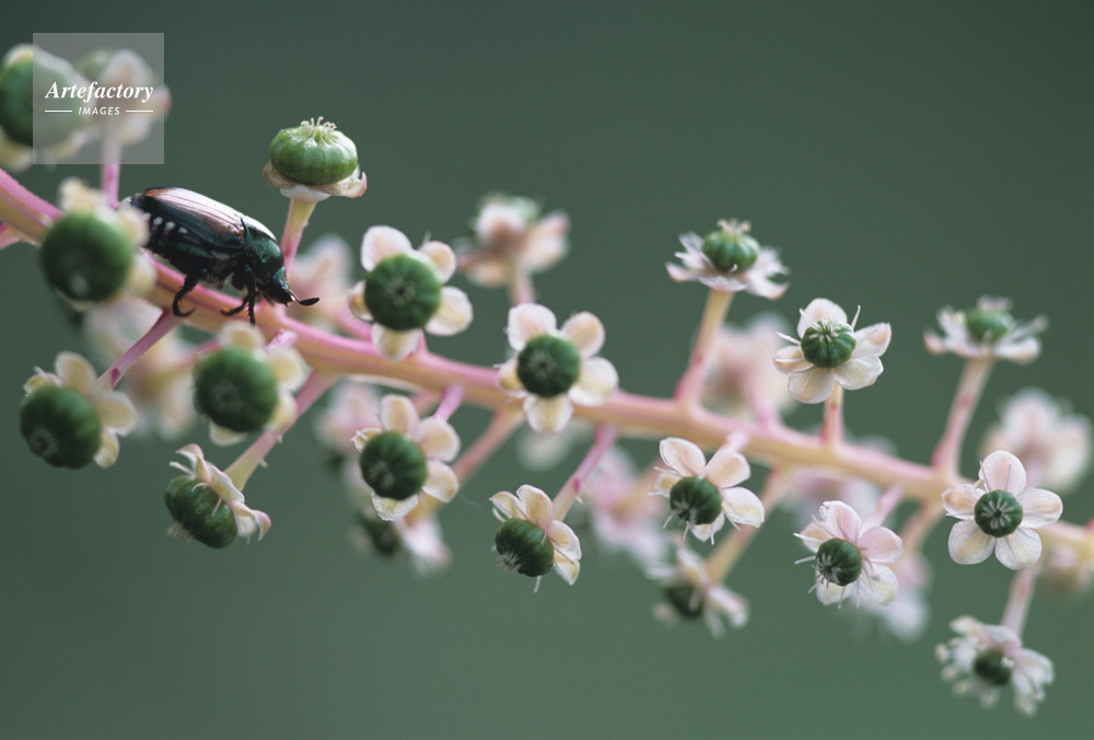 | 作品タイトル | 洋種山牛蒡(ヨウシュヤマゴボウ)と豆黄金虫(マメコガネ) | モデルリリース | なし | |