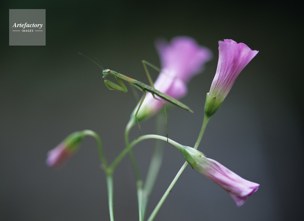 | 作品タイトル | 紫カタバミと蟷螂(オオカマキリ)の幼生 | モデルリリース | なし | |