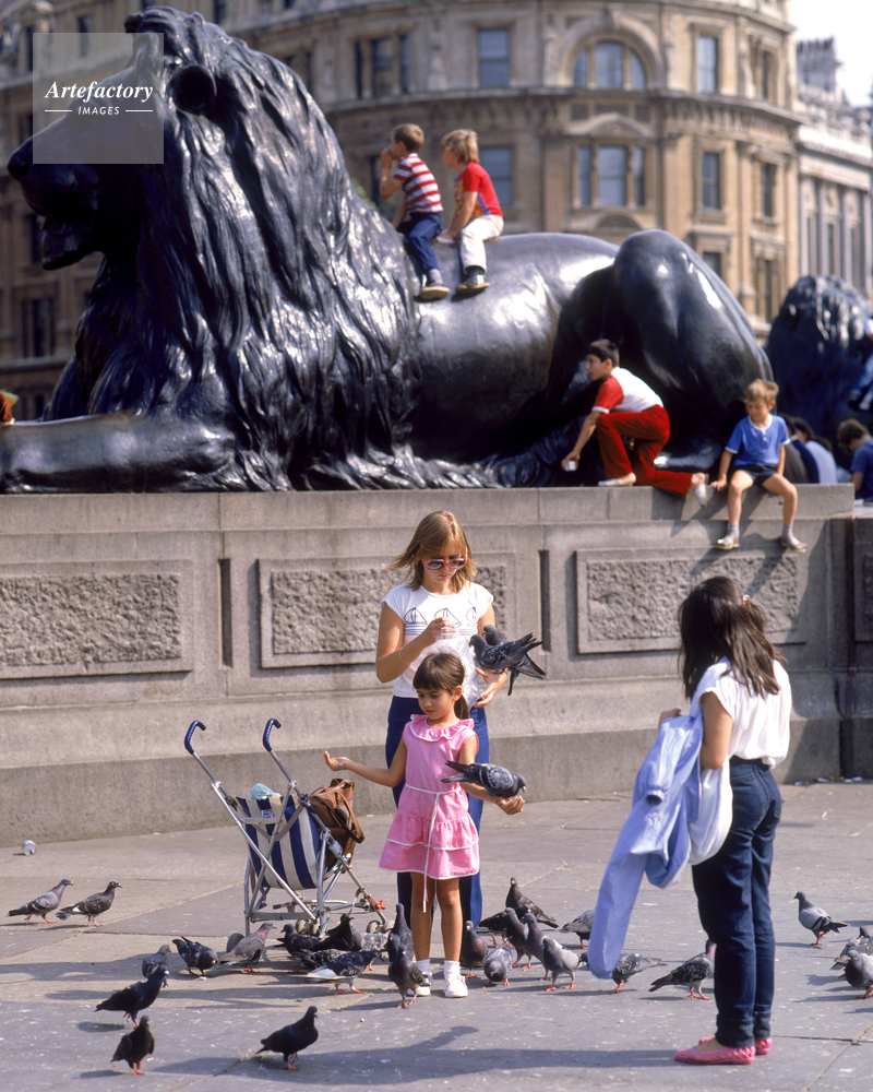 ラファルガー広場,Trafalgar Square,子供,鳩,ライオン