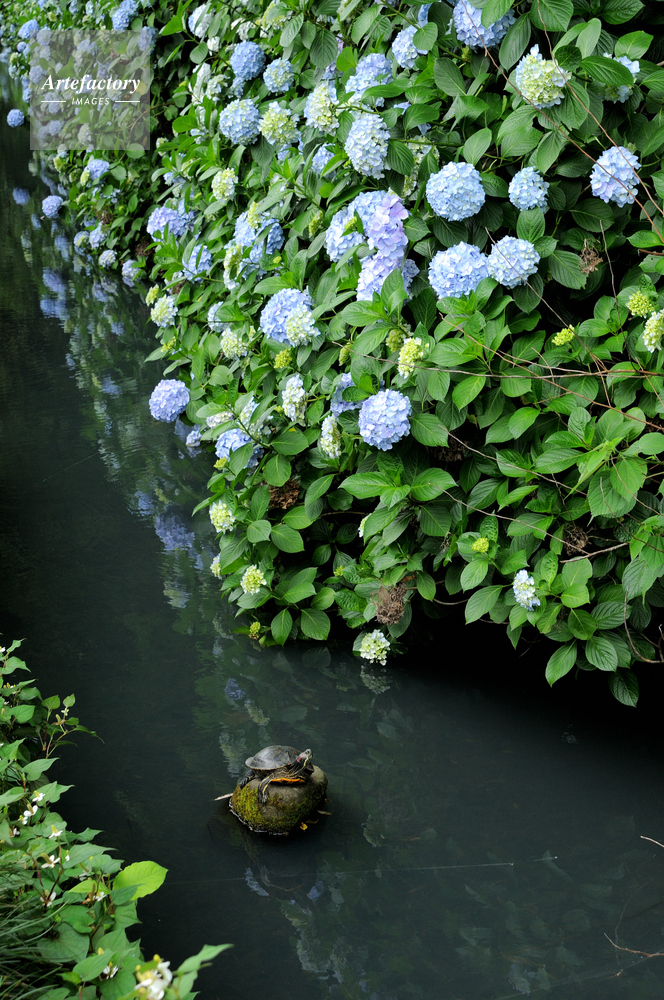 作品タイトル     紫陽花と亀 モデルリリース なし
