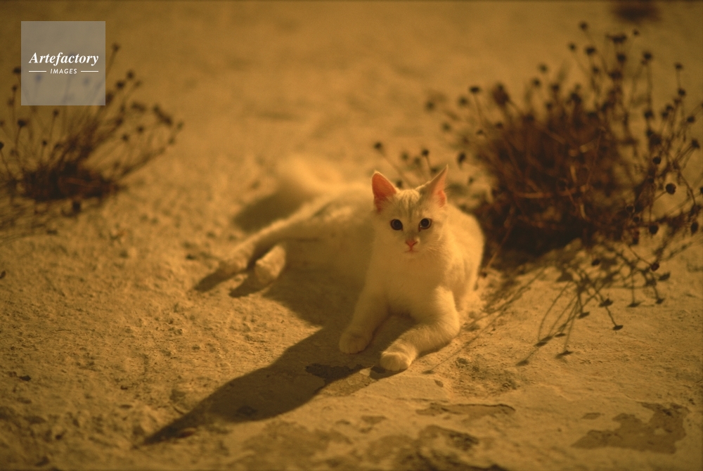 作品タイトル     涼む白猫 モデルリリース なし