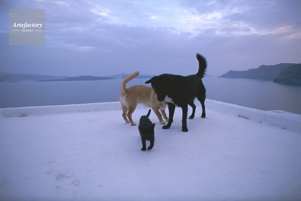 作品タイトル     白い屋根の上の犬と猫 モデルリリース なし