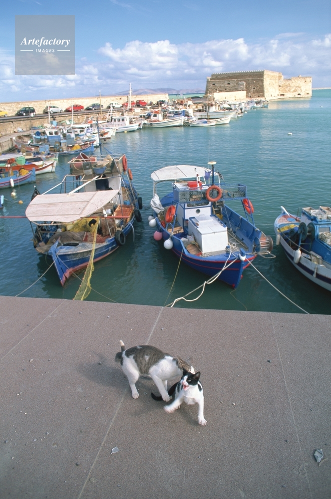 | 作品タイトル | Iraklion,イラクリオン,漁船と猫.ヴェネツィア時代の要塞 | モデルリリース | なし | |